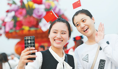 国庆长假,天安门广场游客如潮,图为游客在天安门广场合影留念。 陈晓根摄(人民视觉)