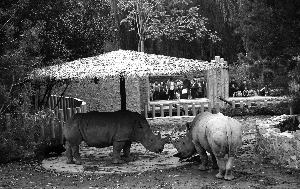 前两年,北京动物园同时引进了2对犀牛小夫妻,犀牛馆家族成员达到了6只,一下子变得拥挤不堪。尤其是运动场太小,夫妻俩遛弯时,这个脑袋顶着那个的屁股,转不开身。动物园于是决定把犀牛馆前的小广场纳入犀牛馆范围内,改造为犀牛运动场,增加犀牛家院子的面积。改造后的犀牛新家昨天正式对游客开放。