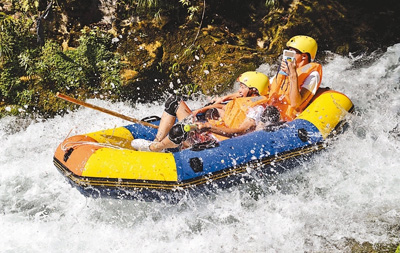 在贵州镇远高过河,游客尽享漂流的乐趣。 乔启明摄(新华社发)