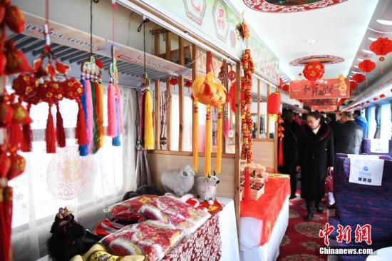 1月13日,春运首日,兰州铁路局兰州客运段担当的Z6207次列车上设立“年货超市”吸引旅客。中新社记者 杨艳敏 摄