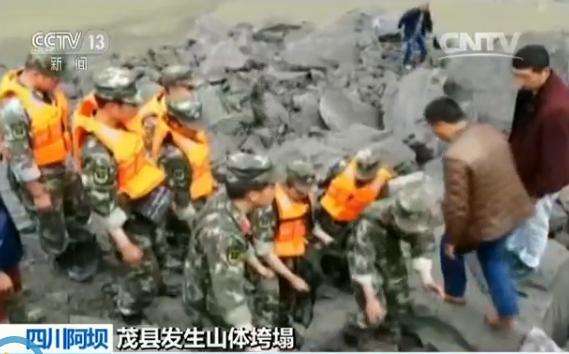 此外,垮塌灾情发生后,武警四川总队阿坝支队茂县中队30名官兵于上午八点许到达现场,和当地消防、民兵等救援力量第一时间赶赴现场展开救援。由于垮塌量巨大,加上不断有山石滚落,救援难度很大。武警阿坝州就近抽调十二中队和松潘县中队一百多名官兵携带生命探测仪、救援绳索、医疗救护等设备赶赴现场救援。武警交通部队一总队三支队抽调70台挖掘机、拖车、装载机和255官兵正在赶赴现场。