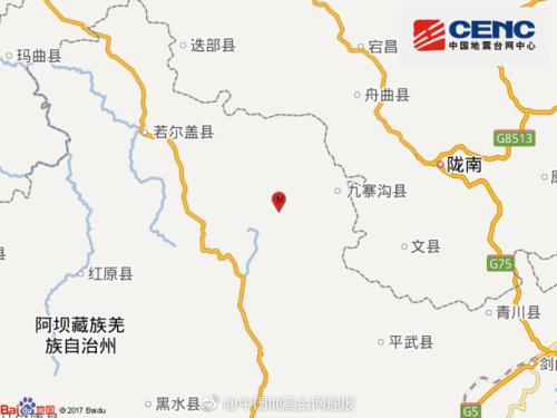 阿坝州九寨沟县发生4.8级地震 震源深度26千米(图)