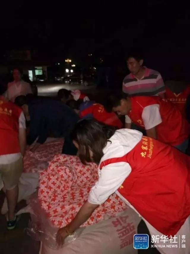 四川省红十字会系统首批物资发放到九寨沟受灾群众手中。根据九寨沟地震抗震救灾应急指挥部的统一布署,在四川省红十字会的紧急调度下,九寨沟县红十字会连夜调集救灾物资并发放。凌晨1时左右,红十字会系统首批救灾物资250床棉被已发放到受灾地群众手中。