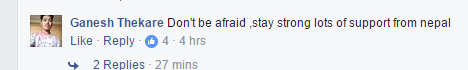 尼泊尔网友留言为中国加油。(图片来源:脸谱网截图)