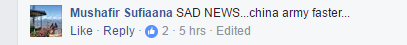 有脸谱网网友留言,点赞中国军队在救灾中的反应速度。(图片来源:脸谱网截图)