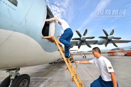 西部战区空军航空兵某团运-9机组人员快速机载设备,待命起飞升空。 黄军摄