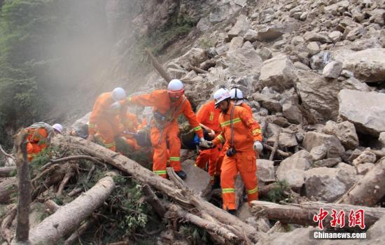 8月9日,四川消防官兵奋战在地震灾区前线。 中新社记者 钟欣 摄 图片来源:阿坝消防供图