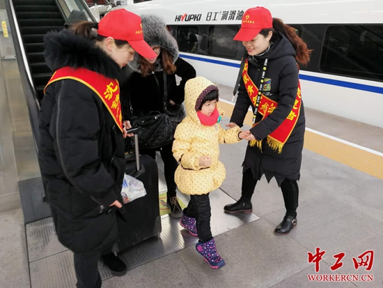 2月1日,为期四十天的2018年春运正式拉开帷幕。在沈阳局集团公司长春客运段团委组织下,这些志愿者来到站台,为重点旅客提供“100米送站服务”,搀老扶幼、帮拿行李、车厢引导。在东北凛冽的寒风中,让旅客感受到浓浓的暖意。