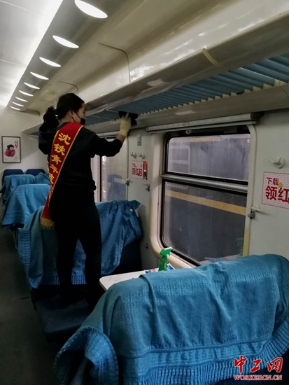 随后,30名志愿者来到长春列车运用库,为长春至重庆北K1572次列车进行出库整备,为旅客提供更干净、更舒适的乘车环境。“以前在家不干活,虽然很累,但通过我们的双手让旅客拥有更美好的出行体验,心里非常满足”,志愿者杜鑫慧擦着满头汗水对记者说。