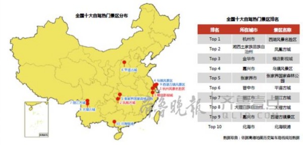春运期间,全国十大自驾热门景区Top10有4个分布在长三角区域,其中杭州西湖风景名胜区是自驾最热门景区,其次是凤凰古城、横店影视城、乌镇、张家界国家森林公园、平遥古城、丽江古城、大理古城、西塘古镇景区和北海银滩。