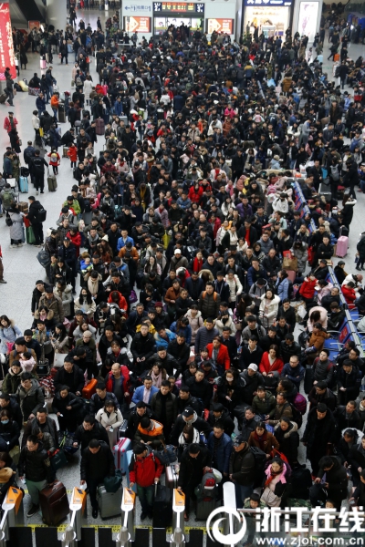 杭州火车东站人潮涌动 迎春运客流高峰(组图)