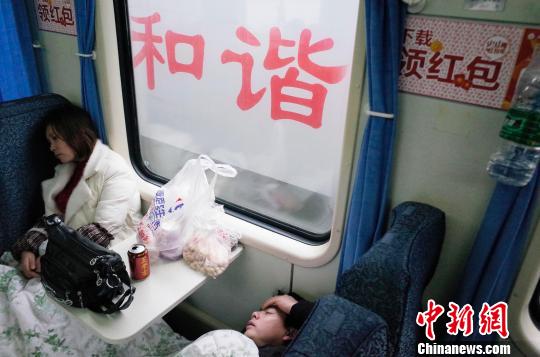列车过了秀山站后,许多硬座上的旅客可以平躺下好好休息。 殷立勤 摄