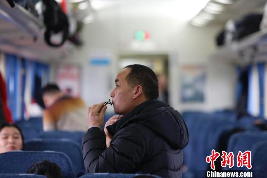 车厢内旅客刮起了胡子。 殷立勤 摄