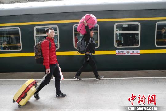 9日上午9时30分,旅客带着行李准备搭乘K4663次列车前往成都。 殷立勤 摄