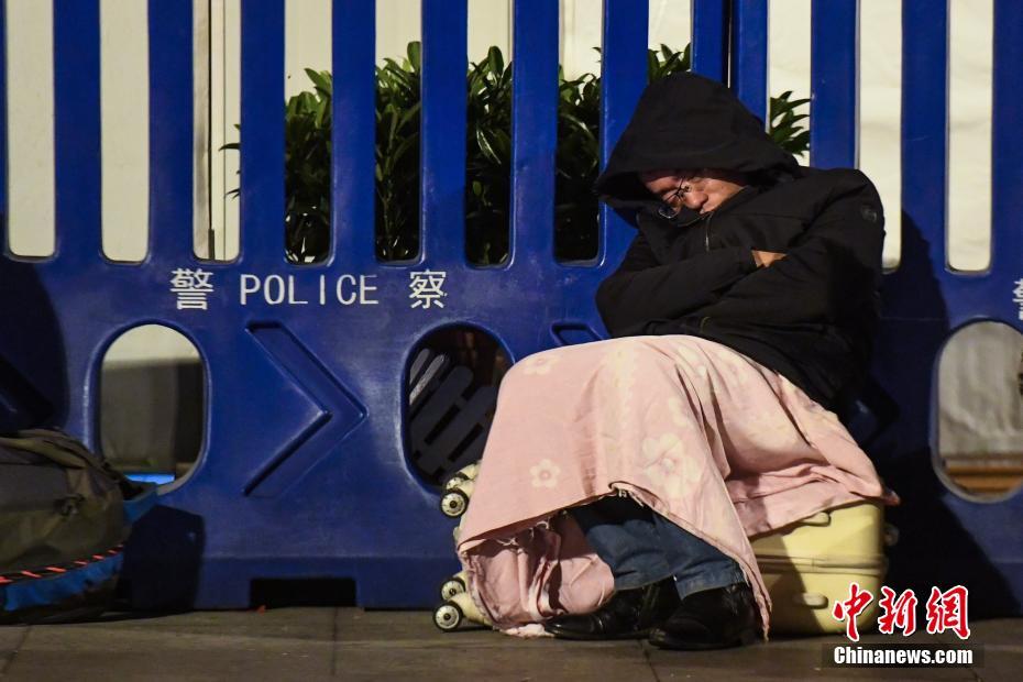 2月12日凌晨,一名候车的旅客在广州火车站站前广场入睡。 中新社记者 廖树培 摄