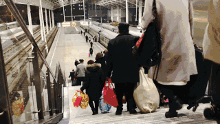 车终于到达了阜阳站。还没到站时,旅客们早早搬下行李,穿上外套。在门口排队等候,“归心似箭咯!”