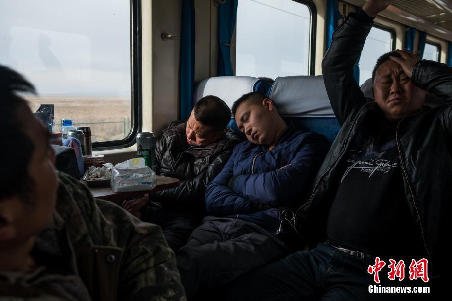 2月13日,旅客在车厢内休息。历经21小时,1956公里的跋山涉水,由铁路拉萨站开往成都的Z324次列车,13日15时19分抵达西宁站,完成雪域“天路”——青藏铁路段的行驶,八百余名旅客顺利完成春运“大迁徙”。青藏铁路被誉为“天路”,起于青海省西宁市,途经格尔木市、昆仑山口,翻越唐古拉山口,最终抵达拉萨。是世界海拔最高、在冻土上路程最长的高原铁路。 中新社记者 何蓬磊 摄