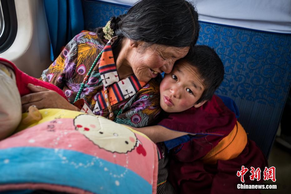 2月13日,来自四川甘孜的朝佛者乘车返乡。历经21小时,1956公里的跋山涉水,由铁路拉萨站开往成都的Z324次列车,13日15时19分抵达西宁站,完成雪域“天路”——青藏铁路段的行驶,八百余名旅客顺利完成春运“大迁徙”。青藏铁路被誉为“天路”,起于青海省西宁市,途经格尔木市、昆仑山口,翻越唐古拉山口,最终抵达拉萨。是世界海拔最高、在冻土上路程最长的高原铁路。 中新社记者 何蓬磊 摄
