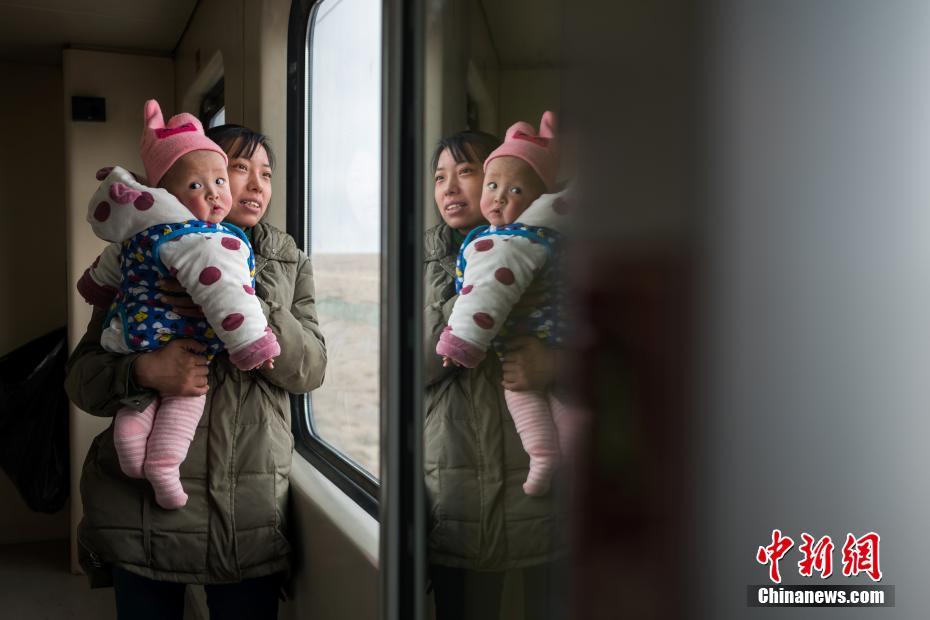 2月13日,母女俩在车厢的窗边远眺。历经21小时,1956公里的跋山涉水,由铁路拉萨站开往成都的Z324次列车,13日15时19分抵达西宁站,完成雪域“天路”——青藏铁路段的行驶,八百余名旅客顺利完成春运“大迁徙”。青藏铁路被誉为“天路”,起于青海省西宁市,途经格尔木市、昆仑山口,翻越唐古拉山口,最终抵达拉萨。是世界海拔最高、在冻土上路程最长的高原铁路。 中新社记者 何蓬磊 摄