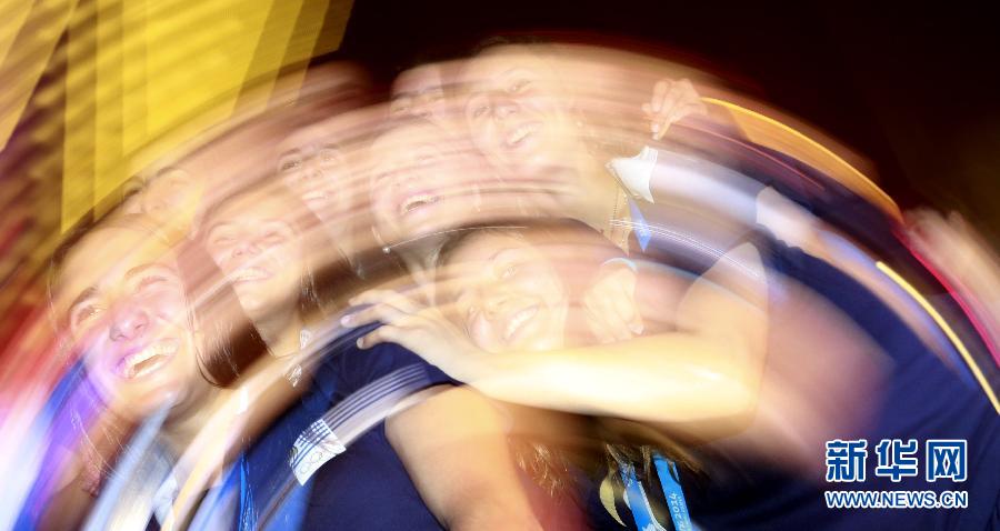 8月15日,运动员们在晚会上狂欢。当晚,以“我们来欢聚”为主题的欢迎晚会在南京青奥村广场举行,来自全世界的青少年运动员一起联欢,尽情释放青春的欢乐与激情。新华社记者任正来摄