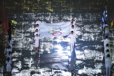 2.刘翔等运动员护送奥林匹克会旗。新华社发