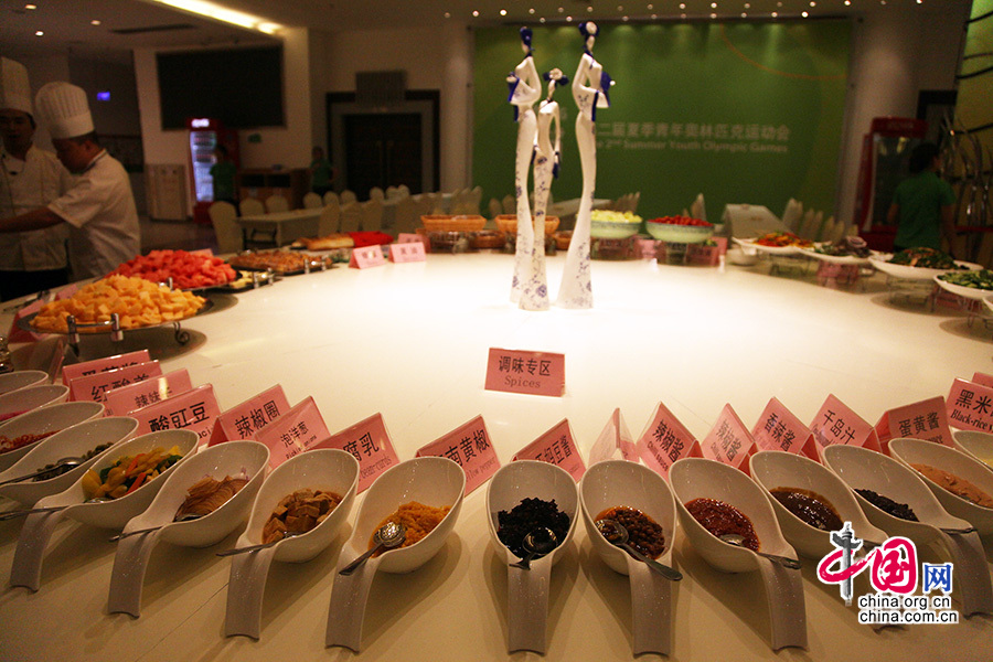 8月15日,主媒体中心的就餐区提供的餐饮。中国网记者李佳摄影