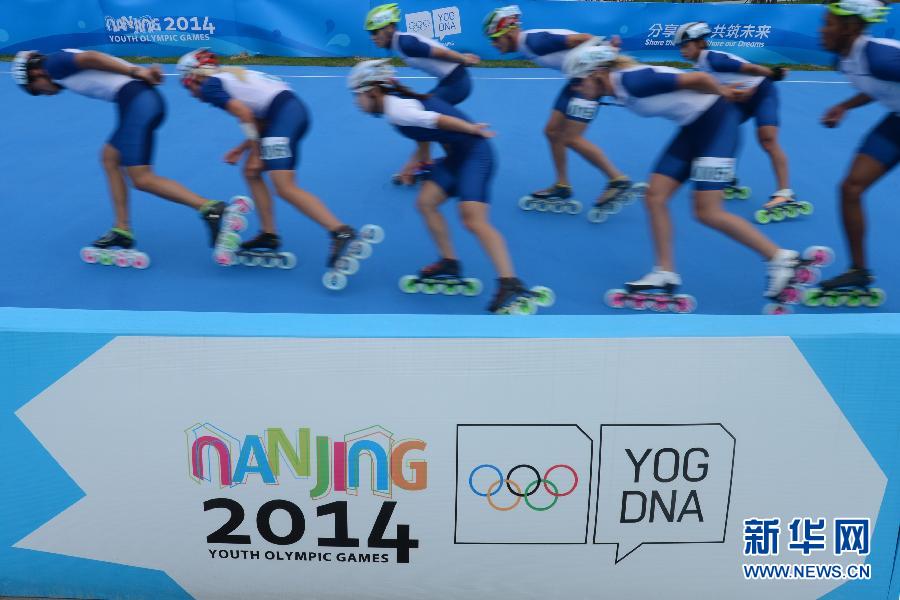 8月19日,几名轮滑运动员在“体育实验室”场馆内为观众表演轮滑。当日,位于南京市鱼嘴公园内的青奥会“体育实验室”吸引了近2000名观众观看现场举行的非奥运项目展演,超过200名青少年观众参与展演项目互动体验当中,完成了自己与青奥会的亲密接触,享受运动带来的快乐,而众多国内外顶尖运动员用无限的活力感染了每一位观众,“体育实验室”成为欢乐的海洋。 8月17日至27日,武术、攀岩、轮滑和滑板作为展示项目在南京体育实验室进行展演,“体育实验室”对观众免费开放。同时,由国际奥委会指定的专业技术官员和专业运动员给观众提供指导。青奥会结束后,体育实验室仍将对市民免费开放。新华社记者张宏祥摄