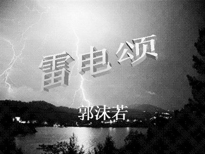 浪漫主义文人,对雷电激变、摧动态势,则寄予更多宣泄情感。因雷电能神奇地把一种难于爆发的情感,很好地表达出来。郭沫若名篇《雷电颂》,是话剧《屈原》中的第五幕,之所以脍炙人口,就是因通过雷电情境——淋漓尽致把一个时代的黑暗撕裂开来。当屈原手足戴刑具,颈上系长链,向风雷电呼喊——你咆哮吧,咆哮吧,尽力地咆哮吧!我们皮肤的每一个毛孔,都变成了心灵的耳朵……