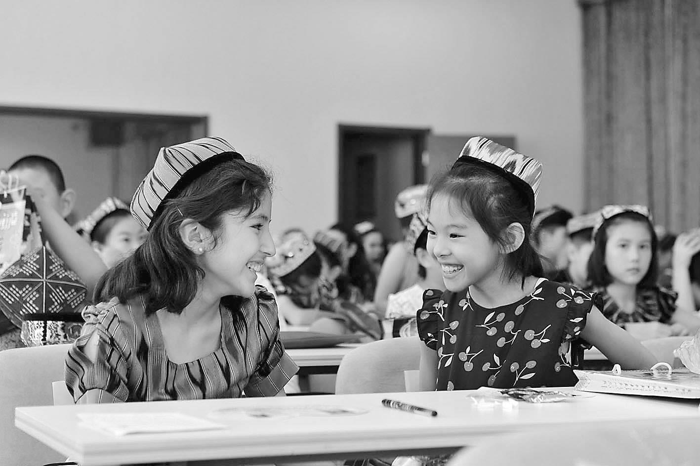 8月15日,在启动仪式现场,牵手结对的和田儿童与北京儿童相互交流。
