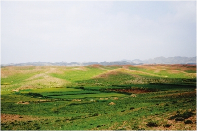 奶奶和表哥赶着牲口要耕地,他们把我放在地头上玩耍。不用哄我就很乐意,迫不及待地从马车上跳下来开始摘野花了。这里天高地阔,小小的我似乎也感到心情舒朗,无拘无束。当我采野花、捡石子、捉蝴蝶好一会儿之后,有一刹那举头望向前方,想看一眼大人们的身影后继续安心地玩耍,可是,平展展的旱砂地伸向远方和天相连,我瞅了好半天也不见奶奶、表哥和大青骡子的一丁点影子。四野空旷而静寂,我于是放声大哭起来。记不清哭了多久,在地平线的那里,渐渐地出现了他们的身影,听到他们有节奏地吆喝牲口的声音,于是我止住了哭声,但是小小的心里从此埋下了疑惑:这平展展的旱砂地到底有没有尽头啊?