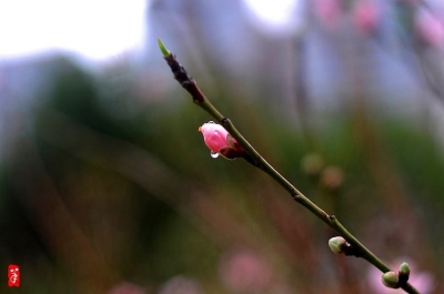 春从哪里来?春从花骨朵上来,从这些并不为人所重视的小不点身上来。枝依然黑,干依然硬,恍惚间,又分明能看到盈天盈地的绿,似云,似雾,却又草色遥看近却无。悄悄而来的春,不是文字,而是诗的意境;不是画,而是笔墨的写意;不是书法,而是流动的飞白;甚至也不是音乐,而是琴弦上的的诗意。而出卖冬,泄露春的的花骨朵啊,正以万树千枝,以骨朵的爆竹,炸开春的笑容。