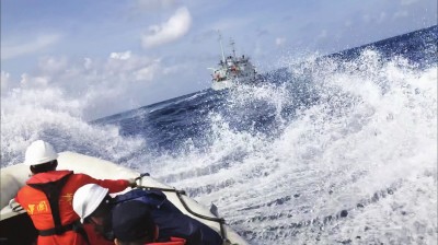 见不远处有我国渔船,南海航保中心许舜若副处长出了个点子:渔民常年在这里打渔,他们熟悉航道,请渔民为我们的小艇带路。