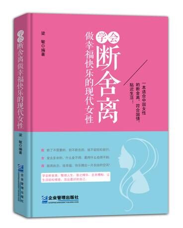 本书结合中国国情和中国女性的实际,把断舍离的理念从现实生活到思想意识教给女性朋友们,使得她们摆脱生活上不断做加法的方式,并由生活的清爽引入到思想意识上的整理,让她们抛却陈旧、抛却负面、抛却让自己受累的理念。就这样由生活到思想,由思想到生活,轮回整理,实现轻松生活,成就幸福人生。