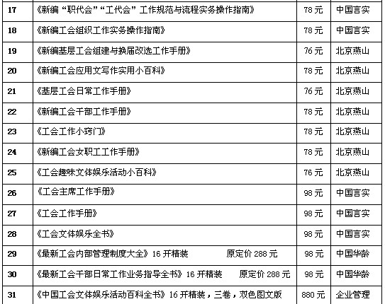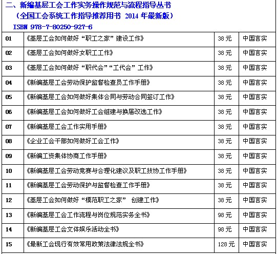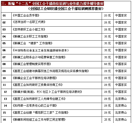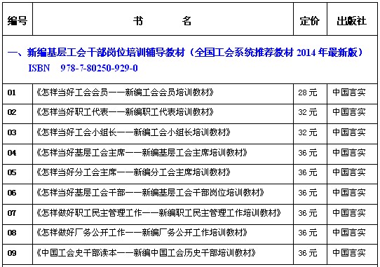 全国工会干部岗位培训与工作业务指导推荐图书