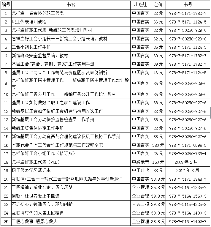 2017--2018年度全国各级工会召开“职代会”“工代会”优秀图书推荐