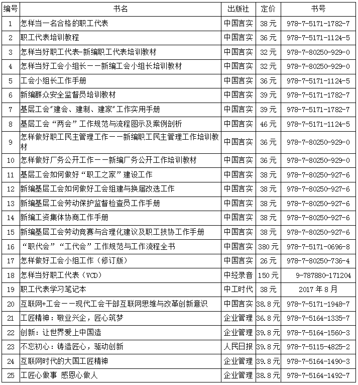 2017--2018年度全国各级工会召开“职代会”“工代会”优秀图书推荐
