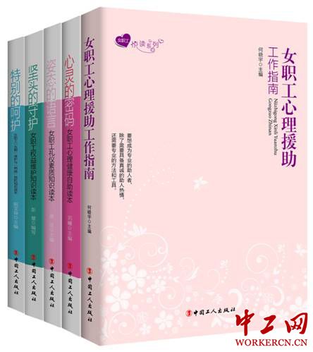 第一册《女职工心理援助工作指南》能够为女职工成为专业的助人者,提供专业的方法和工具。第二册《心灵的密码——女职工心理健康自助读本》能够让职业女性充分了解自身的内外特点时,还能及时调整自我,让身心达到最佳的协调状态。第三册《姿态的语言——女职工礼仪素质提升读本》能够让女职工掌握基本的礼仪常识,在日常的生活和工作中优雅而美丽。第四册《坚实的守护——女职工权益维护知识读本》能够让女职工了解法律赋予的诸多权益,提高女职工自我保护意识,帮助女职工在工作和生活过程中维护自身合法权益。第五册《特别的呵护——女职工“五期”保护与“两癌”预防知识读本》为了帮助女性了解经期、孕期、产期、哺乳期、经期的保护知识与“乳腺癌”“宫颈癌”预防保健知识,了解亦是为了防治,这种保护,不仅是对女职工本身,同时也是对下一代安全和健康的保护。