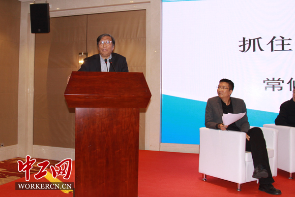 中国宏观经济研究院教授常修泽在论坛上发言。(中国工人出版社供图)