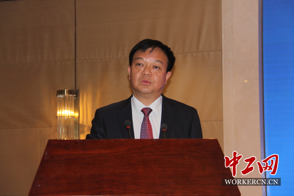 中国工人出版社社长芮宗金在论坛上发言。(中国工人出版社供图)