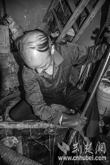 左:工人下去工作。右:出来后一片狼藉。 遇到管道堵塞时,他们还是要下到粪坑里进行人工疏通。他们跳过粪窖、整个人钻进过一人粗的粪管、用手掏过便池,各种恶劣环境。他们称大一点的粪窖为“隧道”、粗且长的粪管为“地道”、便池的管道为“密道”,公厕的“隧道”、“地道”“密道”在他们的疏通下道道畅通。