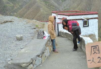 在室外景区方便,丁一舟会与看守的人员讲明情况,然后背着赖敏如厕。 赖敏喜欢做着专属于恋人间的小游戏,比如给一舟扎个小辫,便开心地手舞足蹈。 入夜的拉萨,静谧中伴着凉意。布达拉宫广场,坐在轮椅上的赖敏牵着男友丁一舟的手,凝望着山腰上的布达拉宫,这是他们向往已久的地方。 历时6个月,行程4000余公里,丁一舟和赖敏于7月1日抵达拉萨。7月5日,在布达拉宫广场上,丁一舟手捧格桑花向赖敏求婚,彼此许下终生陪伴的承诺。 今年1月1日,广西柳州小伙儿丁一舟骑着单车,带着爱犬“阿宝”,用两根绳子拉着轮椅,载着患有“企鹅病”的女友赖敏,从柳州出发开启旅途。这对彼此深爱的恋人,想在中国地图上走出个心形来(本报1月10日报道)。