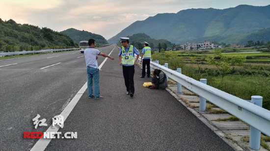 8月5日下午6时左右,刘先生在高速上发现一名流浪人员,报警助其获救。图左一为刘先生。 红网长沙8月5日讯(时刻新闻记者 廖洁 实习生 熊虬)一名流浪汉饥困交加,把高速公路当“床”睡,开车路过的刘先生担心他遭遇不测,绕路回到流浪汉身边,报警后停车守护,直至他得救才走。 8月5日下午6点左右,天气十分炎热,长沙市民刘先生驱车从郴州市临武县驶入高速公路后不久,发现对面车道上横躺一名男子,十分危险。因高速公路不能掉头,也不能停车,担心该男子有状况的刘先生将车开至就近的收费站后,再重新驶入高速,开至该男子身边的应急车道,下车查看情况。 刘先生发现,该男子衣衫褴褛,像是一名流浪人员。由于这名男子表达不清楚,无法和他正常交流,刘先生便拨打了报警电话,向警方求助。 “本来是想打完电话就离开的,但不知道交警什么时候可以过来。高速公路上气温很高,怕他中暑,加之路上车来车往,速度都很快,出于他的安全考虑,我就留下来等交警过来了。”刘先生说。