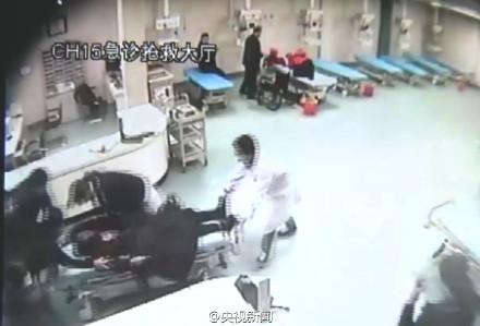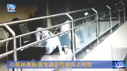 老人心脏骤停 医生跪担架车上抢救5分钟(组图)