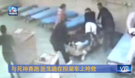 医生跪着抢救老人 医生跪着抢救老人 医生跪着抢救老人 医生跪着抢救老人 河北,70岁老人在医院心脏骤停,医生赶来,立即跪地抢救。往急救科转运,医生全程跪在担架车上,一刻未停按压心脏。施救、转运、上呼吸机、除颤…5分钟后,终将病人从死亡边缘拉了回来!向白衣天使致敬!(央视记者谢宾超)