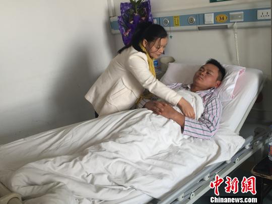 任梦照顾病床上的丈夫胡光志 傅煜 摄 中新网岳阳11月30日电 题:在疑犯开枪的一刹那,他推开民众赴向枪口 ——记湖南80后缉毒民警胡光志 记者 傅煜 在疑犯就要开枪的一刹那,他果敢地推开民众,赴向了枪口。子弹穿入了他的身体,但他似乎没有察觉,仍然紧追疑犯,直到20多米后,倒在血泊中…… 这不是恐怖片中的警匪枪战,是11月初实实在在发生在湖南岳阳城区的真实一幕。这个勇赴枪口的人名叫胡光志,岳阳市华容县公安局禁毒大队教导员。其命悬一线挺身为民挡子弹的事迹,感动了许多人。 “贪生怕死还当什么警察?” 时间回到11月3日下午1时许,贩毒嫌疑人黄某出现在岳阳市某住宅小区。就在胡光志和另一民警任建文准备对其实施抓捕时,黄某迅速逃窜至6楼的出租屋内,将门窗紧锁。随后,黄某打电话紧急召集同伙,企图转移民警注意力负隅顽抗。当任建文下楼察看时,黄某突然开门,手持一把砍刀挥舞着冲出出租屋,与蹲守在此的胡光志正面相撞。情况紧急,躲过刀锋的胡光志鸣枪示警,黄某被逼回出租屋内。随后,黄某翻窗企图顺下水管逃逸。 此时,岳阳市公安局禁毒支队董建平等3名民警已赶到现场支援,并请来开锁师傅,准备开锁进房检查。当胡光志和开锁工正欲上楼时,小区院内突然闯入3名嫌疑人,其中2人手持砍刀,1人手持自制霰弹枪,气势汹汹地向胡光志等人冲来。 “哪个是公安?”一名嫌疑人大声叫囔。“我就是!”胡光志响亮地回答。有备而来的对方迅速举起枪并扣动了扳机。就在这一刹那,胡光志果敢地将开锁师傅推开去,前倾卧倒并扣响了扳机。对方射出的子弹进入了胡光志的右胸和左臂。 “在那种高度紧张的状态下,根本没意识到痛。直至追出20多米、准备再度举枪时,才感觉头脑昏沉,轰然倒地。”胡光志事后回忆。 10个多小时后,7名涉案嫌疑人全部归案,现场缴获冰毒500多克,麻古20多粒,自制枪3把。此时还处于昏迷状态的胡光志第一次缺席自己经办的案件告破。