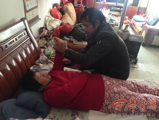 长安区女子出事故险成植物人 昏迷45天被丈夫唤醒 “我一直感觉她能够醒过来,所以从未放弃。”43岁的王新利说。经过他连续45天的声声呼唤,妻子终于睁开了眼睛,现在已经能够被搀扶着走路了。他们共同创造的生命奇迹也在当地传为佳话。 回家路上出事故 妻子昏迷 王新利是长安区黄良街办石佛寺村村民,1997年,他娶了同村姑娘辛娟,此后夫妻一起四处打工,为这个家忙碌奔波。虽然家里不富裕,但一家人的生活平凡而幸福。 转折发生在2014年11月13日。当晚7时许,王新利和妻子辛娟干完活骑着电动车回家,由于村道没有路灯,一个不小心,电动车撞到了路边的垃圾箱上,辛娟当场陷入昏迷,随即被紧急送往航天总医院抢救。 在医院里,辛娟被诊断为重型闭合性颅脑损伤,右侧开放性粉碎性髌骨骨折等,做了两次手术,住了36天院,但还是没有清醒过来。在医生的建议下,王新利将妻子转到了高新医院。 “她一直昏迷着,我心都碎了,我不放弃她,我相信她肯定也没有放弃我。”王新利说,在医院的每一天,他都会趴在妻子耳朵边,呼唤着她,给她讲两个人的过去,还将自己和儿子的话录在手机里,几乎不间断地给妻子播放。 昏迷45天后 妻子苏醒了 在辛娟昏迷了45天后,奇迹出现了,“慢慢地,我感觉她有点反应,我喊她名字时,能感觉到她的大拇指在捏我”。 感觉到妻子在动,王新利泪流满面,他握住妻子的手,趴在她耳边说:“你要是想娃了,想我了,就把我的手再攥一下。”话音刚落,辛娟就握了他一下,一只眼睛还睁开了一条缝。看着妻子一天天好转,王新利的心情也一天天好起来。 快到2015年春节了,王新利把妻子接回了家。妻子虽然有了知觉,但大小便失禁,面部没有表情。2015年3月王新利再次带妻子住院,这次需要进行康复治疗。当年5月,因为实在没有经济能力了,他只得将妻子接回了家。