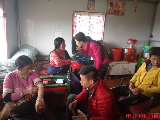 羚锐制药爱心代表给牧民交待用药方法(未来网记者 张晓迪 摄) 玛多县是青海省内海拔最高的县,平均海拔为4300米,农作物很难在这里生长。玛多县团委书记华毛措告诉记者,玛多县藏族人民的经济收入主要靠放牧。牧民由于生活在草原,离县城医院较远,加上健康意识薄弱,像这样孩子感冒发烧的情况,一般都只能靠自己抗过去,因此牧民的身体状况并不是很好。加上高原长期缺氧,多变的气候,玛多县的平均寿命只有54岁。 从5月20日至目前,“爱心万里行”活动已成功行走了河北、河南、山东,湖北、四川将近1万公里的路程,接下来“爱心万里行”还要去甘肃,宁夏,内蒙,福建,要给这些地方的55所乡村学校,尤其是留守儿童送去日常药品和书籍,书柜。总行程计划为2万公里。 华毛措是藏族人,听了这次“爱心万里行”和牧民之间的邂逅,她说:“藏汉一家亲,语言不通,心相通。”