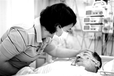 图为马克妻子王女士在病房内照顾他的场景。 6月29日,杭州。 29日是49岁的英国人马克躺在病床上的第118天,也将是最后一天了。上午9时,马克被送到手术室,他的两个角膜、一对肾脏、一个心脏、一个肝脏将捐献给6个中国人。他自愿在死后将器官捐献给中国人。这是他早就决定好的方式,也是他留给这片深爱着的土地最后的礼物。