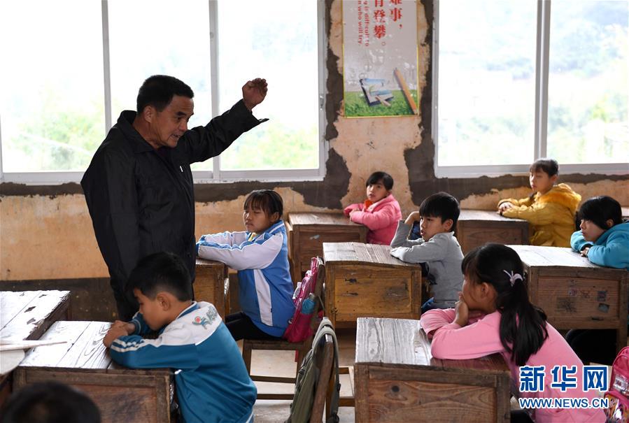 倪华成在广西岑溪市波塘镇杨亦小学为孩子们上最后一课(2月28日摄)。