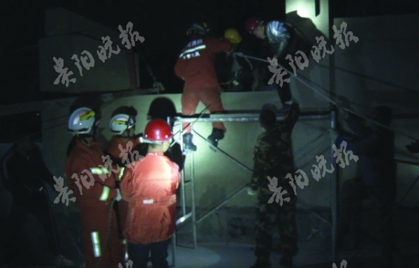 升降机“罢工”工人困在19米高空 消防官兵搭梯施救